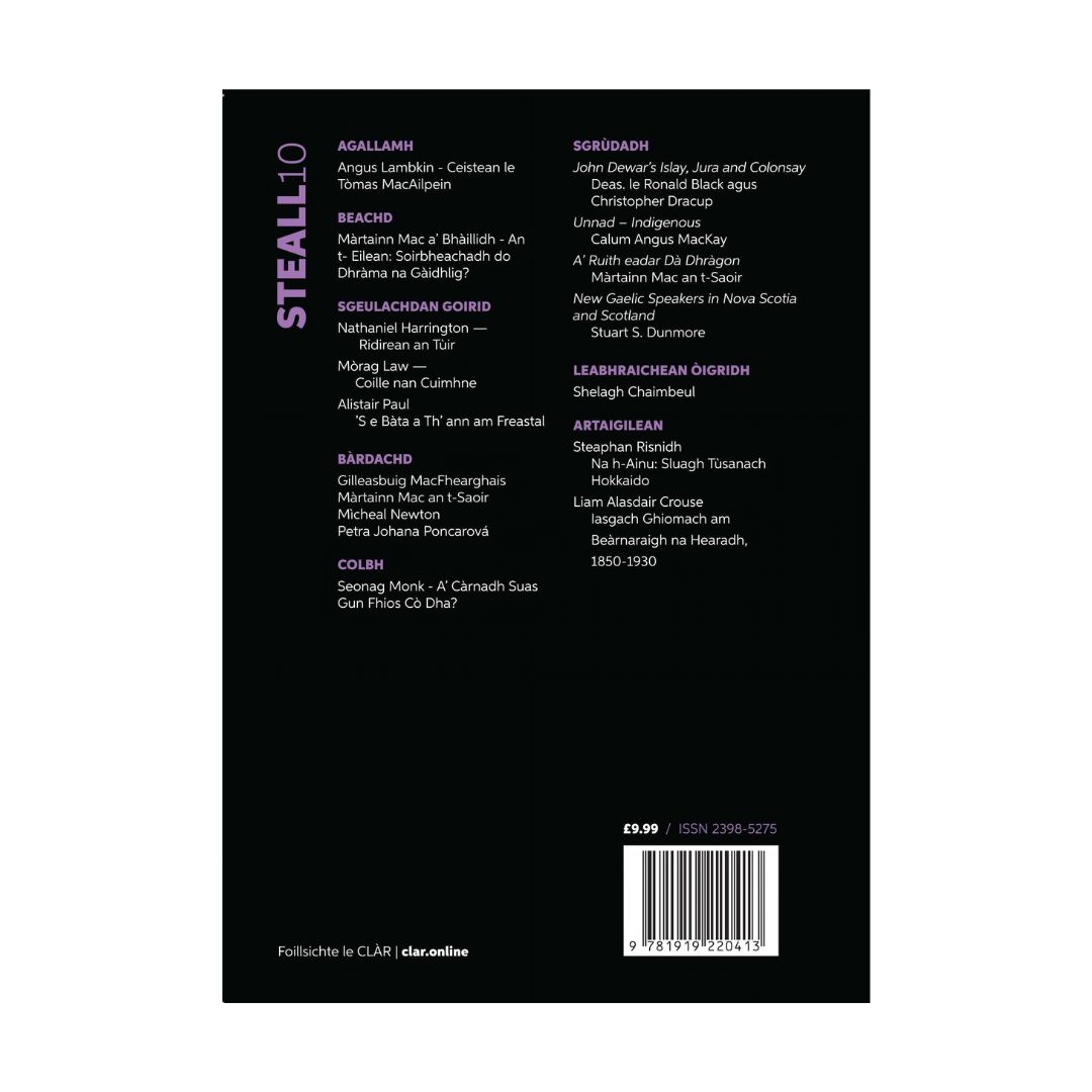 Interviews, columns, short stories, poetry, reviews and articles. In this issue: writing by Nathaniel Harrington, Mòrag Law, Alistair Paul, along with poetry by Gilleasbuig MacFhearghais, Màrtainn Mac an t-Soair, Mìcheal Newton and Petra J. Poncarová. Think pieces, articles and reviews by the likes of Seonag Monk, Tòmas MacAilpein, Steaphan Risnidh and Liam Alasdair Crouse.